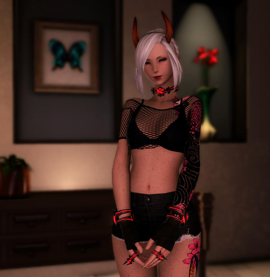 Preferences: Switch (Lalafell only get hugs)Little is known about where Amierra originated from, apart from the traces of void energy that surround her. Many believe she arrived to gather information on the lives of the men and women of Eorzea. To what end, they couldn’t say. She herself was unable to answer however strove to find out as to why. As the days turned to weeks, she slowly started to realize however, she hadn’t come alone…In dealing with the natural elements over her time, she sought the help of the Red Mage order to hone her skills in combat and element manipulation. Soon after, she found herself quite drawn to the way of the shadows when she realized she could combine some of the elemental arts she had learned as a Red Mage into the Ninja’s art of Ninjitsu. After some time, she decided to finally embrace who she was once again. The people of Eorzea had come to trust her and felt she was of no harm to them. Becoming the Reaper she had always been, she cast aside her mask and embraced her true self but this time... with new purpose.Usually quite shy at first and not one to start conversations, she soon found herself enjoying the company of the men and women of Eorzea and tends to frequent the local venues in order to better understand them. After a time, she decided to leave her past life in favor of a life in Eorzea. In doing so, she had met someone very special to her at a local club. Someone that made her void-stained heart begin to… feel. Born within the void and quickly becoming second only to Exdeath himself, she had never felt emotion before. What was this? What was becoming of her? Now, having to balance her newfound emotions, she began to control the entity within her with the aid of those she now held dear to her. Ever watchful so she may not loose control once more.She now resides in various areas throughout the land. Harnessing the voidsent that surges through her with new purpose. From sunrise to sunset, reaching out to those in need. As for the first time in her life she may allow herself to breathe and feel....
