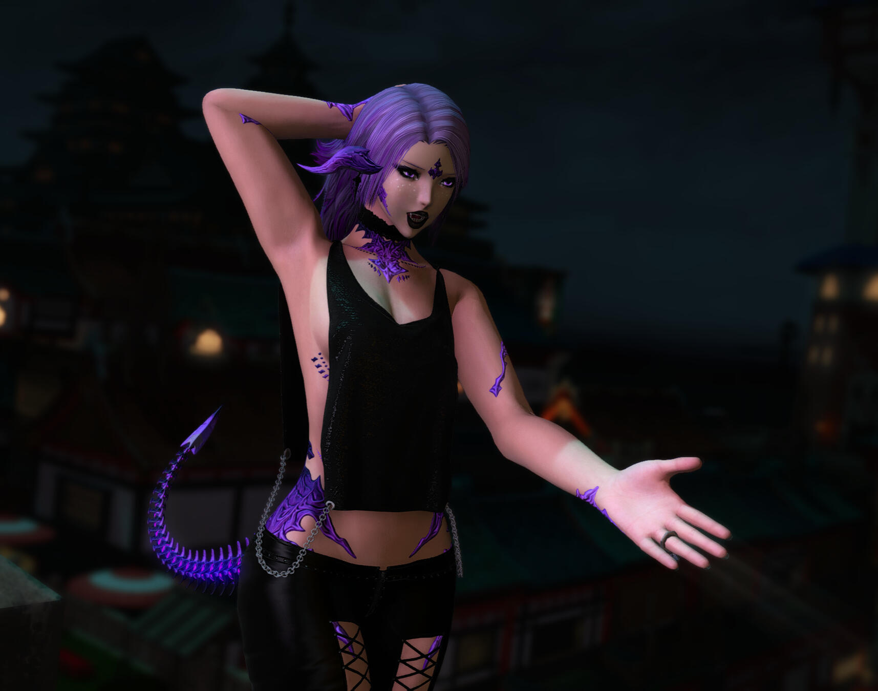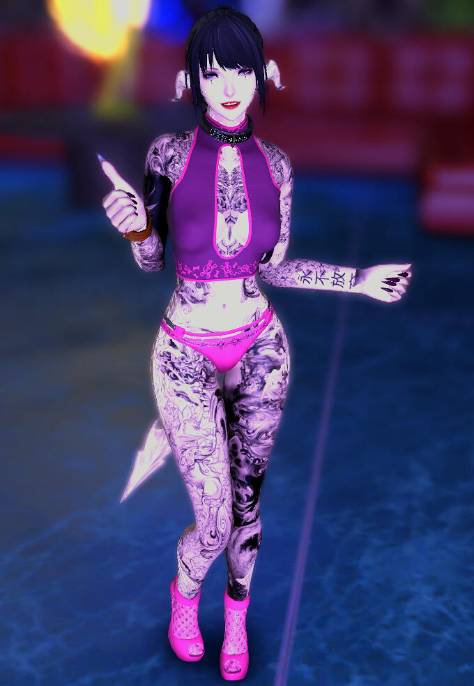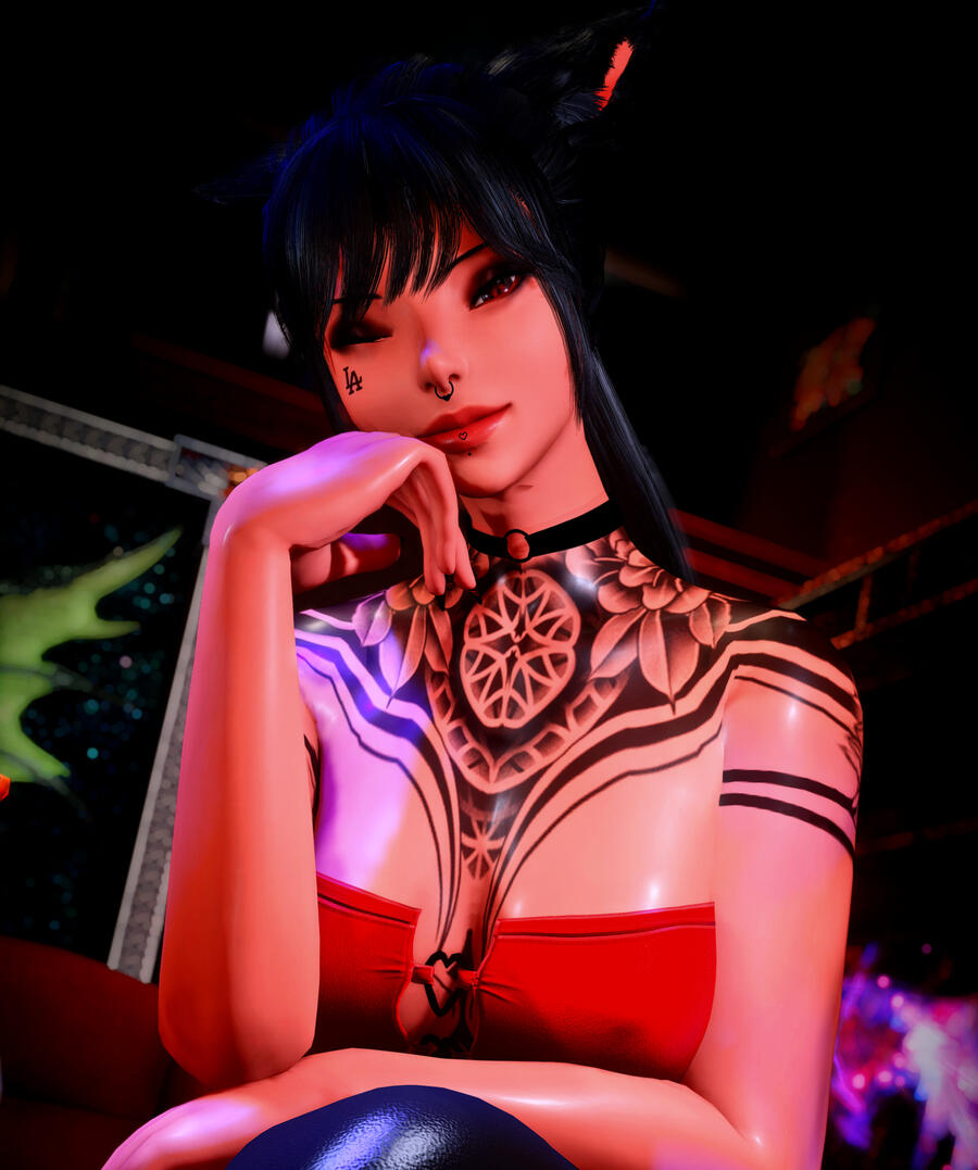 Sexuality: "Everybody's an option." (Chicks are a little cuter, let's be real here.)Preferred Role: Dom leaning, or Helluvabrat.Bio: A little Au Ra who picked up dancing to help stay in shape for her "day job," Khori doesn't consider it a good night unless she ends it dripping in sweat for one reason or another. She enjoys taunting and teasing, whether blatant or subtle, and even if nothing ultimately comes of it. She's rather elusive and evasive when it comes to anything outside the club itself, but more than happy to be a vibrant presence and eager companion within the walls.Kinks/Likes: Anything deep fried and crunchy, the most alcoholic drink they can serve, long nights of dancing hard, her sneakers, teasing, voyeurism, subtle exhibitionism, being worshiped, playing rough, warm baths and aftercare.Dislikes: Bland food, tea, wearing high heels, squeaky beds and floorboards, ageplay, beastiality, bodily fluids (except saliva/blood), being a "good little girl."