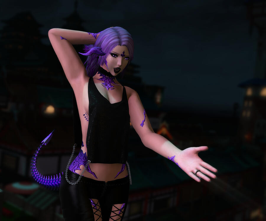 Sexuality: "Everybody's an option." (Chicks are a little cuter, let's be real here.)Preferred Role: Dom leaning, or Helluvabrat.Bio: A little Au Ra who picked up dancing to help stay in shape for her "day job," Khori doesn't consider it a good night unless she ends it dripping in sweat for one reason or another. She enjoys taunting and teasing, whether blatant or subtle, and even if nothing ultimately comes of it. She's rather elusive and evasive when it comes to anything outside the club itself, but more than happy to be a vibrant presence and eager companion within the walls.Kinks/Likes: Anything deep fried and crunchy, the most alcoholic drink they can serve, long nights of dancing hard, her sneakers, teasing, voyeurism, subtle exhibitionism, being worshiped, playing rough, warm baths and aftercare.Dislikes: Bland food, tea, wearing high heels, squeaky beds and floorboards, ageplay, beastiality, bodily fluids (except saliva/blood), being a "good little girl."